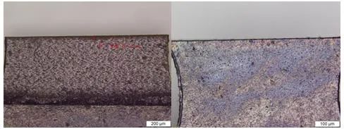 用電子顯微鏡和光學顯微鏡觀察,薄氧化物的光學效應和之前熔融銅的散射/反射性質不太明顯,這使得人們可以關注表面的真實尺寸方面,例如調制、邊緣平直度等。在這里,SEM圖像顯示了一個干凈且經過精密加工的特征,具有高質量的表面。