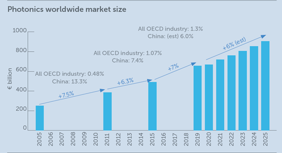 ▲全球光子產業(yè)市場規(guī)模 (€/billion)