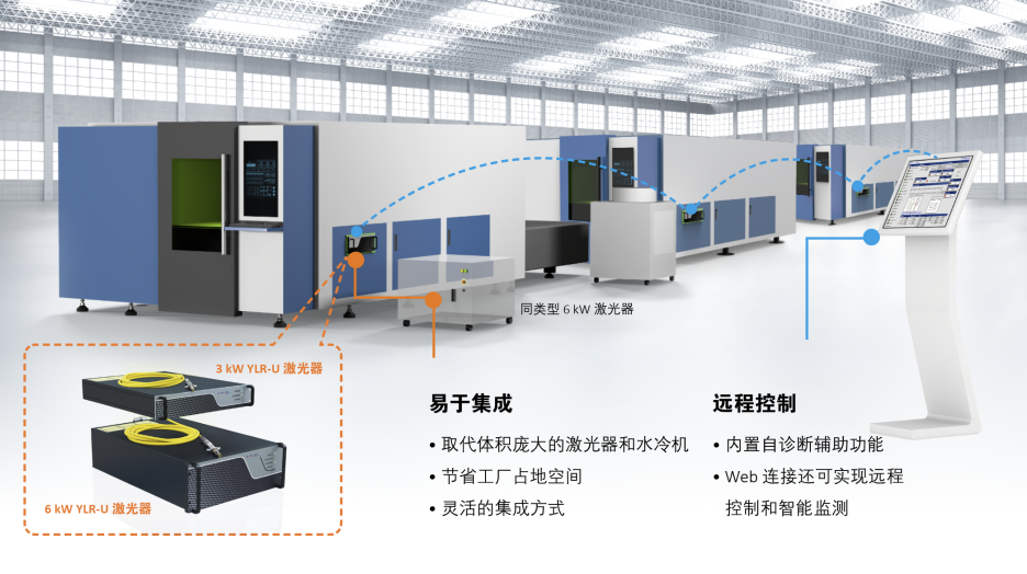 在許多要求苛刻的鈑金加工行業(yè)中,為了提高生產(chǎn)效率,往往是幾十臺激光設(shè)備連續(xù)不斷地加工,比如 7×24 小時全天候的金屬厚板激光切割。在這種生產(chǎn)模式下,與傳統(tǒng)的高功率激光器相比,全新的 6kW YLR-U 激光器,憑借其超緊湊的結(jié)構(gòu),可直接集成到激光系統(tǒng)內(nèi)部,或者安裝系統(tǒng)旁的小型機架或機柜中,系統(tǒng)制造商可輕松實現(xiàn)集成和優(yōu)化占地空間。