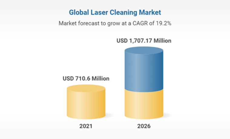 圖表:全球激光清洗市場規(guī)模及增速清洗