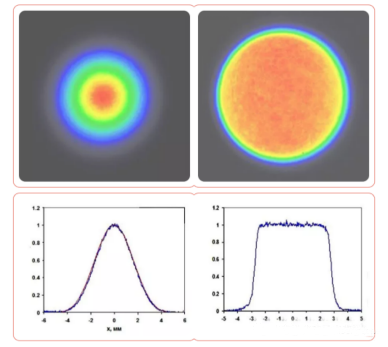 高斯光束的能量分布較為不均勻,中間能量過高,會引起局部溫度過高從而影響激光與物質(zhì)間的相互作用;兩翼能量過低,降低了利用率。因此,在某些場合,需要將高斯光束整形成能量均勻分布的平頂光束,以改善激光加工效果。