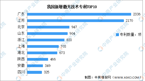 從研發(fā)創(chuàng)新和技術(shù)應(yīng)用上來看,廣東、江蘇是激光技術(shù)創(chuàng)新大省,專利申請(qǐng)量均高于2000項(xiàng),多年一直保持領(lǐng)先地位;北京、山東位列第二梯隊(duì),專利申請(qǐng)量高于900項(xiàng);浙江、上海、湖北等省市則處于第三梯隊(duì)。隨著激光技術(shù)在科學(xué)研究領(lǐng)域的不斷深入和在實(shí)踐中的持續(xù)積累,預(yù)計(jì)未來的專利申請(qǐng)量還將不斷增多,激光技術(shù)也將在我國(guó)的社會(huì)生產(chǎn)活動(dòng)中發(fā)揮出更大的作用。