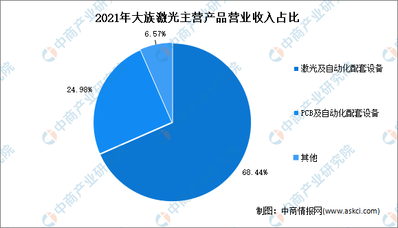 從主營(yíng)產(chǎn)品來看,2021年大族激光主營(yíng)激光及自動(dòng)化配套設(shè)備、PCB及自動(dòng)化配套設(shè)備,營(yíng)業(yè)收入分別為111.78億元、40.81億元,分別占主營(yíng)業(yè)務(wù)收入的68.44%、24.98%。